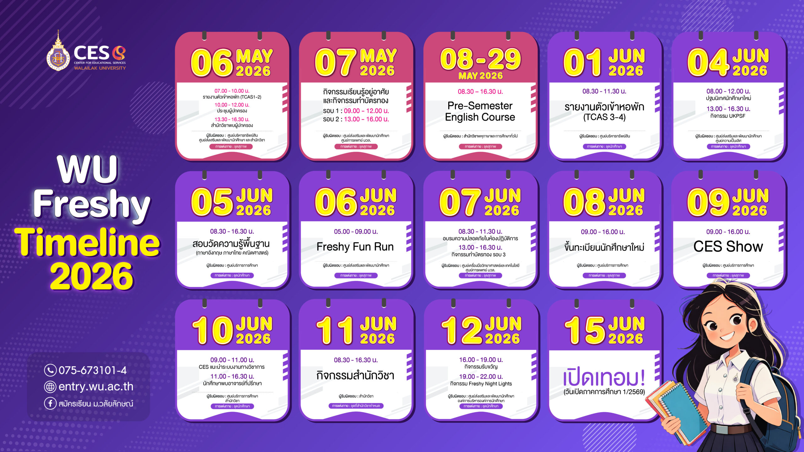 ติดต่อสอบถาม ฝ่ายรับนักศึกษา มหาวิทยาลัยวลัยลักษณ์ โทร 075-673101-5